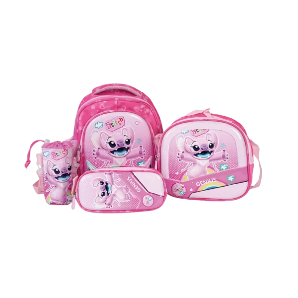 Genius 12in Stitch Design 2 Zippers Fuchsia & Pink Kids Backpack Set