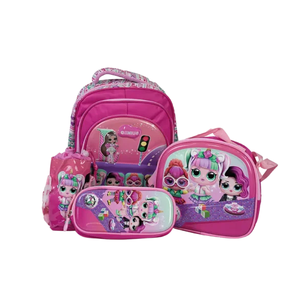 Genius 14in LOL Design 3 Zippers Fuchsia Backpack Set