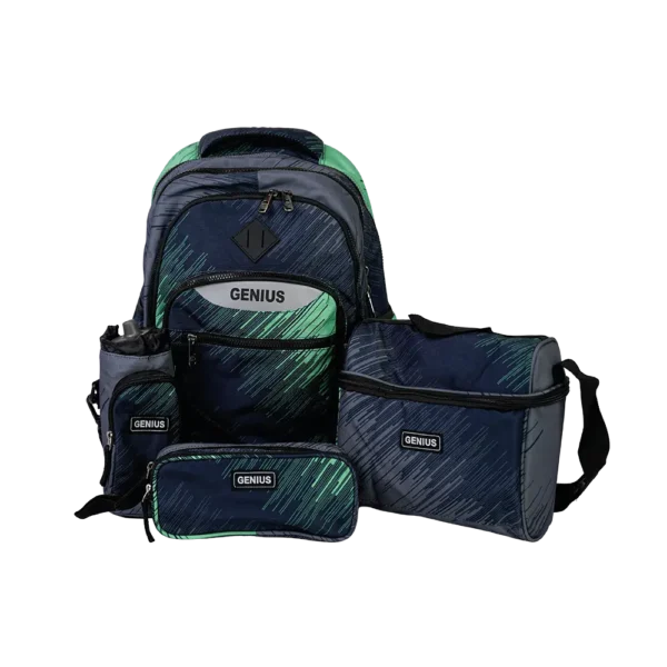 Genius 18in Aqua & Navy Blue 4 Zippers Aqua Backpack Set