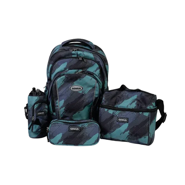 Genius 18in Blue Camo Brush Design 4 Zippers Backpack Set
