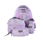 This set includes a large backpack, a matching lunch bag, a pencil case, and a water bottle with a holder, ensuring your child has everything needed for school.