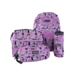 This set includes a large backpack, a matching lunch bag, a pencil case, and a water bottle with a holder, ensuring your child has everything needed for school.