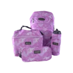 This set includes a large backpack, a matching lunch bag, a pencil case, and a water bottle with a holder, ensuring your child has everything needed for school.