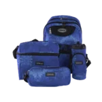This set includes a large backpack, a matching lunch bag, a pencil case, and a water bottle with a holder, ensuring your child has everything needed for school.