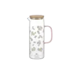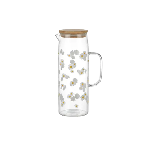 Glass 1.1L White Flowers Design Jug with Wooden Lid