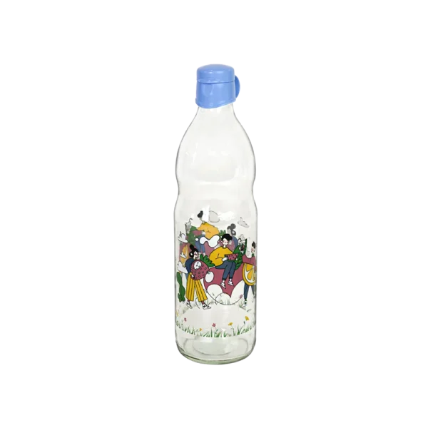 Glass 1L Water Bottle with Blue Lid