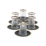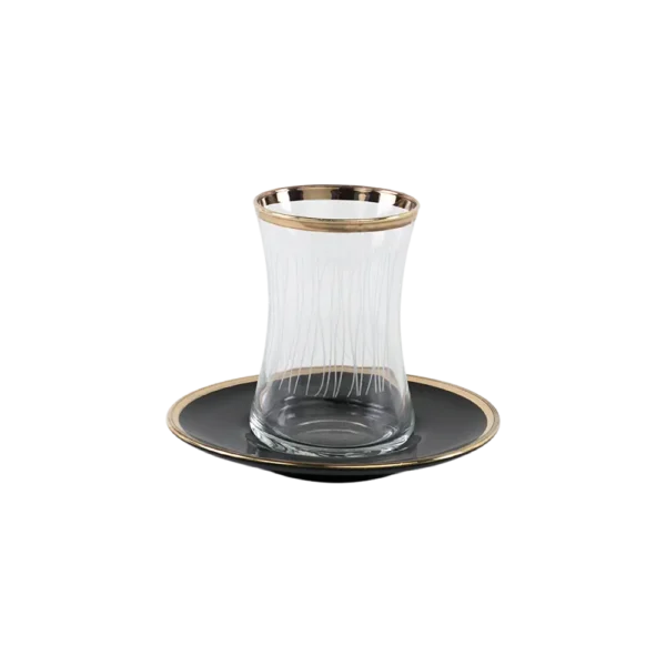 Glass 6Pcs Lines Design Tea Cups Set with Black Saucers