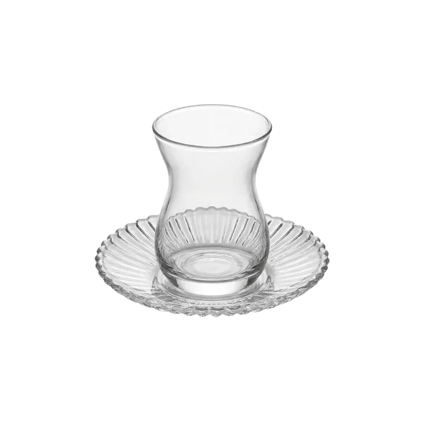 طقم كاسات شاي زجاج مع صحن مخطط – 6 قطع