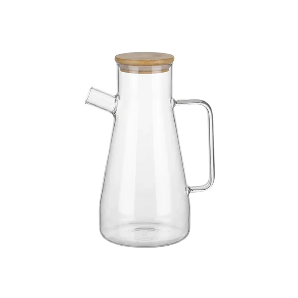 Glass 900ml Serving Jug with Wooden Lidإبريق زيت 900مل زجاجي مع غطاء خشبي
