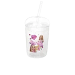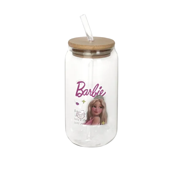 Glass Barbie Mug with Wooden Lid & Glass Straw