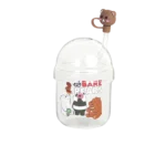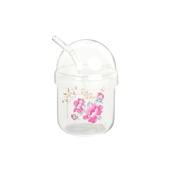 Glass Flowers Design Mug with Glass Lid & Straw