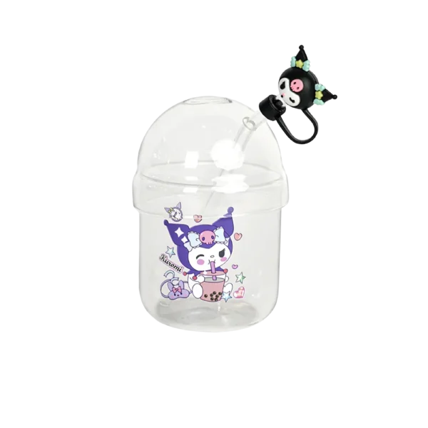 Glass Kuromi Design Mug with Glass Straw & Lid