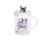 Glass Kuromi Design Mug with Straw & Bamboo Lid