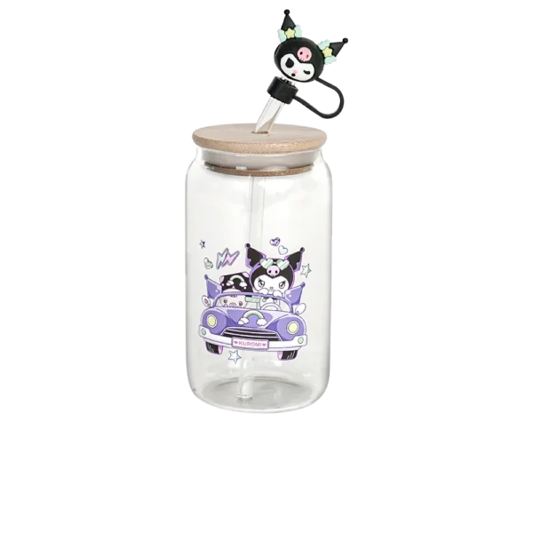 Comes with a transparent straw that includes a rubber Kuromi character topper, adding playful flair and keeping the straw secure.