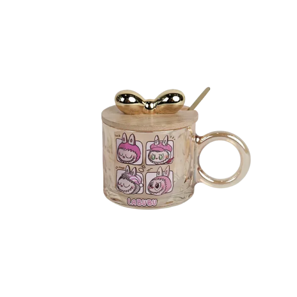 Glass Labubu Design Mug with Wooden Lid & Spoon