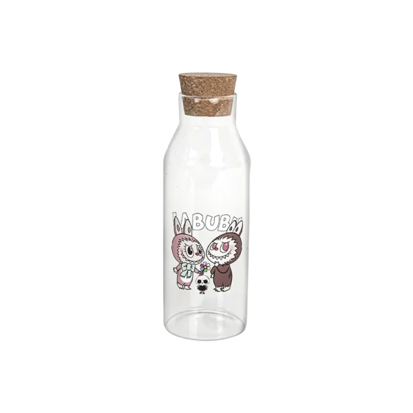Glass Labubu Design Water Bottle with Cork Lid