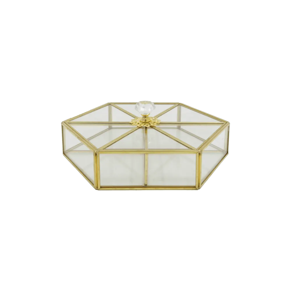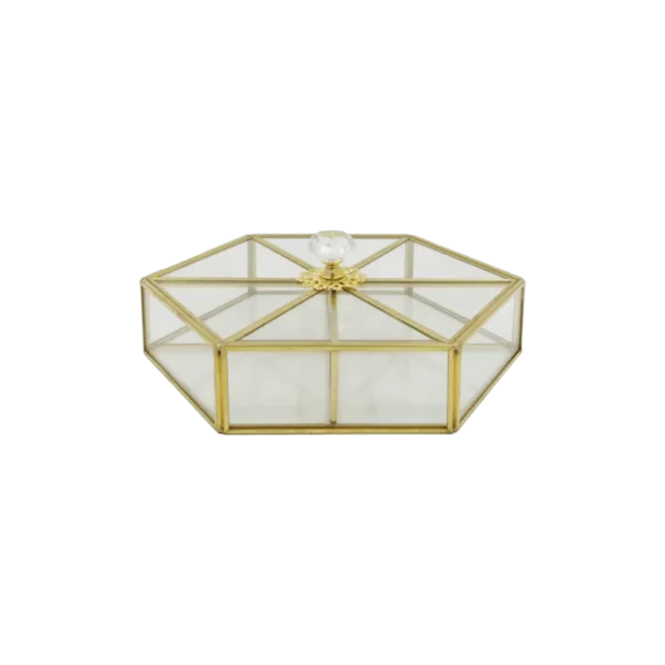 Glass Large 4-Sections Hexagon 22x25cm Serving Box with Lid