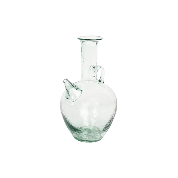 Traditional Mediterranean porrón-style jug with a round body and long narrow neck.