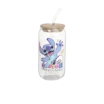 Glass Pink Stitch Design Mug with Straw & Bamboo Lid