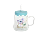Glass Stitch Design Mug with Straw & Silicone Blue Lid