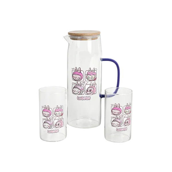 Glass Transparent 3pcs Labubu Design Jug with Two Cups