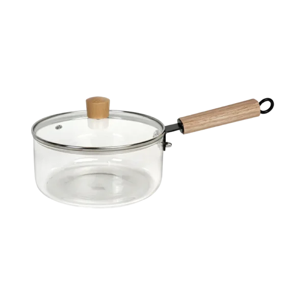 – Lid: Comes with a matching glass lid featuring a wooden knob for safe, cool handling.