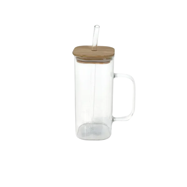 Glass Transparent Mug with Handle & Wooden Lid