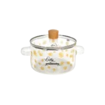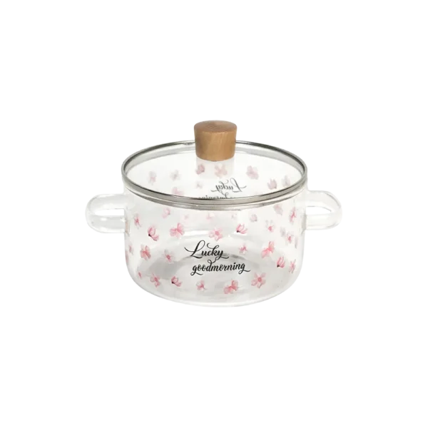 Glass Transparent Pink Flowers Design Small Cooking Pot