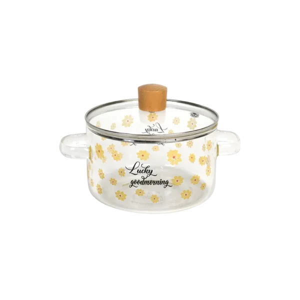 Glass Transparent Yellow Flowers Design Small Cooking Pot