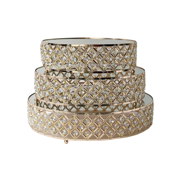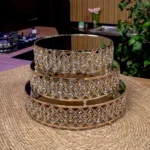 Gold Circular Shaped 3Pcs Mirror Tray Set