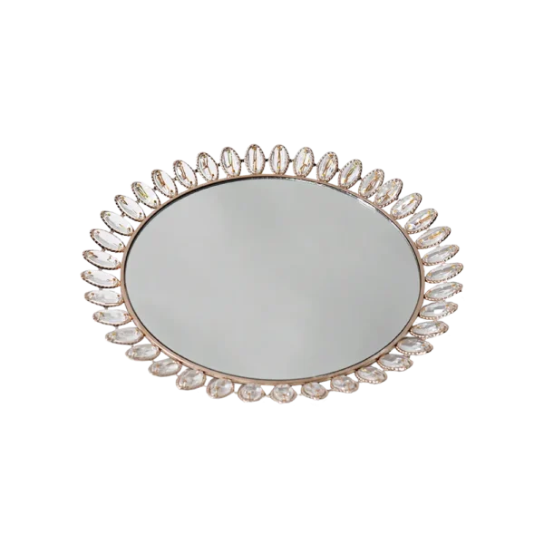 Gold Flower Shaped 37cm Mirror Tray with Crystal