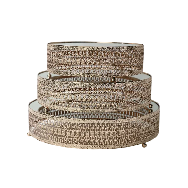 Gold Ornate Circular 3Pcs Mirror Tray Set