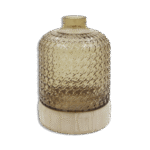 Gold Ribbed 31cm Glass Vase with Wooden Base