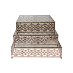 Gold Victorian Style 3Pcs Metal & Glass Tray Set