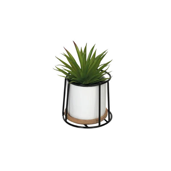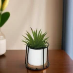 Green Plant 10x10cm with Porcelain White Vase & Black Metal Frame