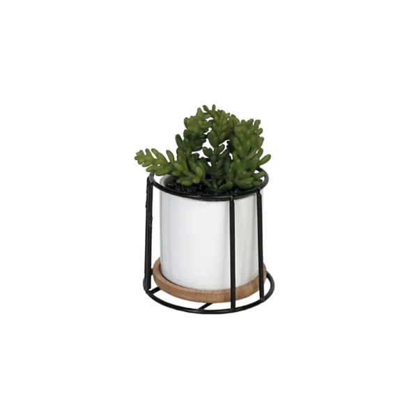 Green Plant 10x10cm with Porcelain White Vase & Metal Frame