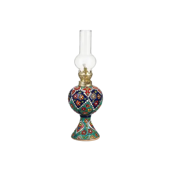 Handmade Floral Pattern Oil Lamp with Glass Chimney 1