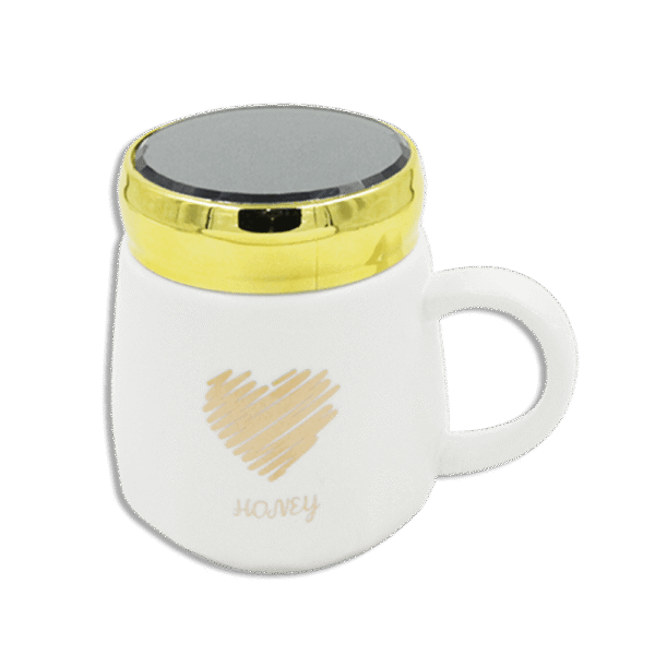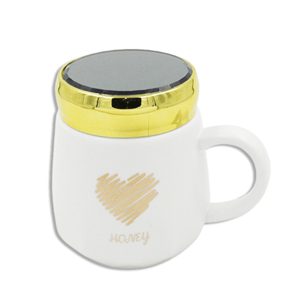 Heart Whtte Glass Mug with Golden Lid