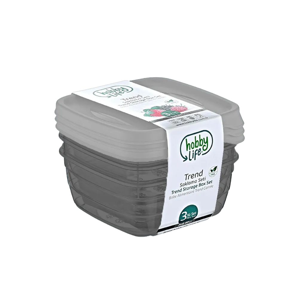 Hobby Life 3×0.5L Black & Grey Square Trend Storage Container