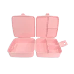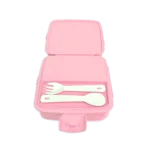 Divided into 2 main covered compartments, one of which is further divided into 3 smaller compartments – also with a separate space for a spoon and fork!