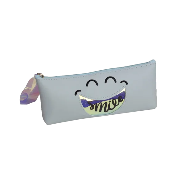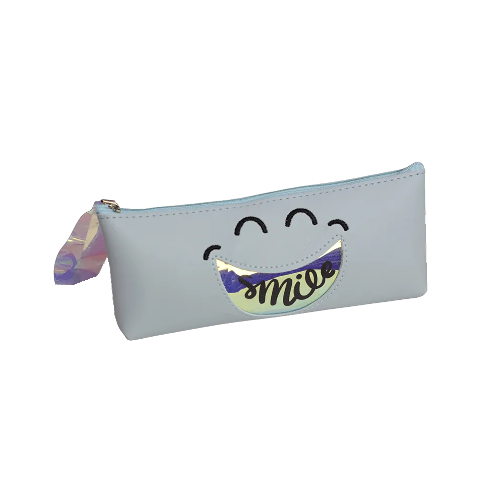 Leather Smile Blue 1 Zipper Pencil Case