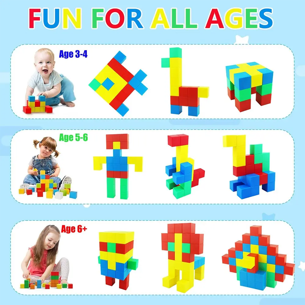 Each block contains built-in magnets for easy stacking and stable structures, helping kids build with confidence.