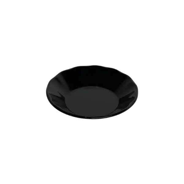 Features a gently scalloped rim and high-gloss black finish that adds a modern, polished touch to any presentation.