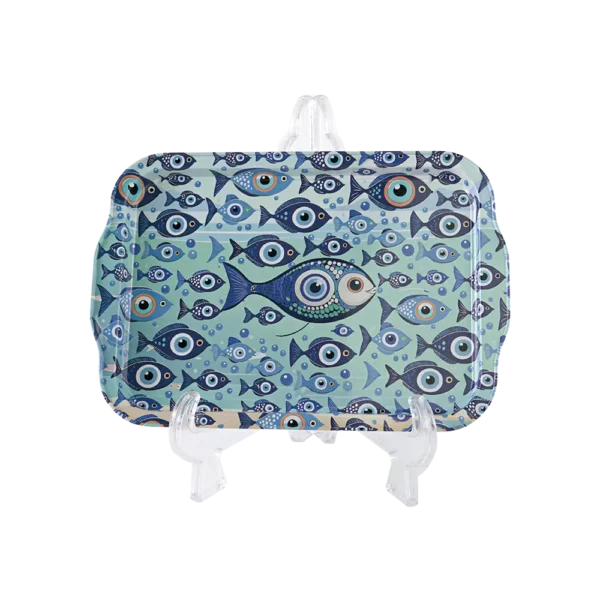 Metal 21.5x32cm Evil Eyes Fish Design Tray