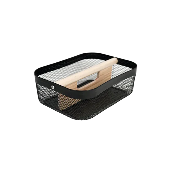 Metal Wire Mesh Storage Basket with Wooden Handle