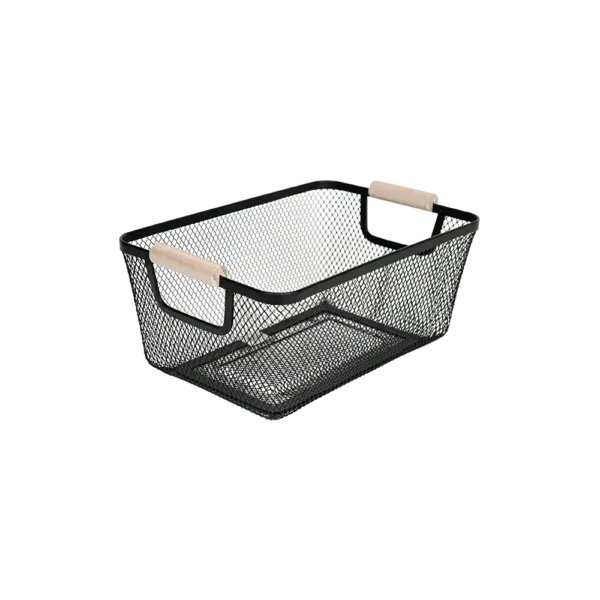 Metal Wire Mesh Storage Basket with Wooden Handles