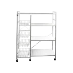 Offers ample storage space with four spacious wire baskets, perfect for organizing fruits, vegetables, kitchen supplies, and other household items.