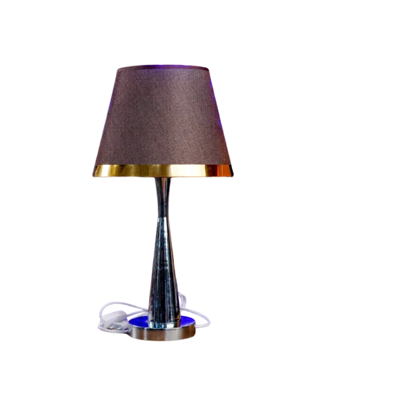 The lamp’s body is crafted with a polished metallic finish and a tapered silhouette, offering a modern, high-end look that complements contemporary décor.
