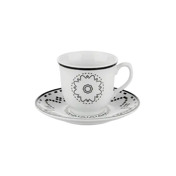 Momaz 12pcs White Coffee Cup & Saucer with Black Flower