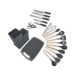 This elegant untensils consists of 20pcs that iclude a cutting board and a cutlery container